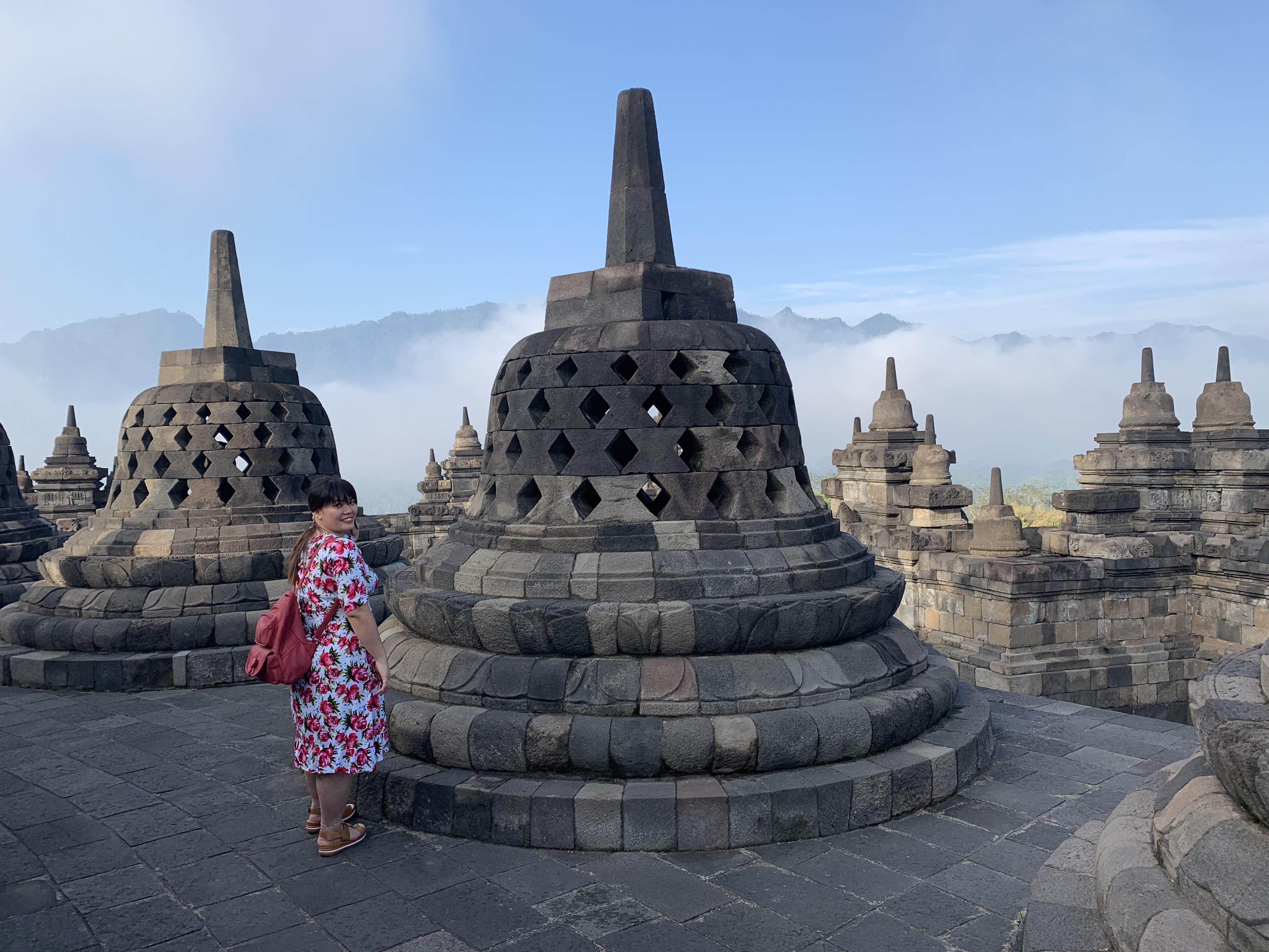 We booked our yogakarta tour borobudur and prambanan tour via klook, got it for 3,759pesos each. This includes the entrance fee to both temples. Our driver arrived hotel at 7am, it was more than hour drive to borobudur. Our driver was very nice but funky. Lol here are our beautiful shots of borobudur.