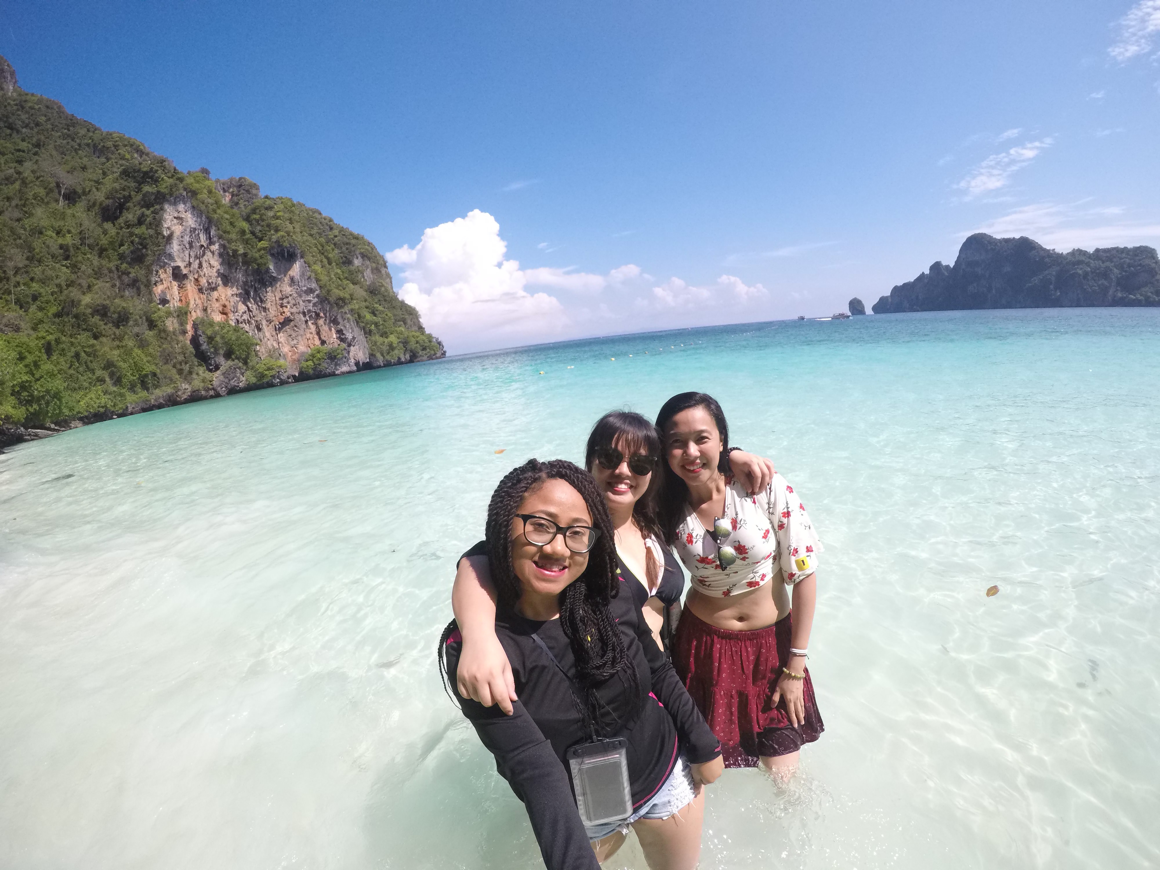 We had our lunch at Andaraman beach . It was beautiful. The lunch was good.. we were really tried. After lunch we headed to our Last spot which was the Koh Phiphi island, its a huge sand bar in the middle of nowhere, and locals selling some seafood, barbebue and drink and with some chillax area, which i find really cool. We had some fruits, and rented some shades lol… after an hour relaxing. We headed back to our first meeting point… it was a really looooooooonggggg and tiring day huhuh with so much funnn… our same driver transported us back to our hotel…Thank you Jesus.